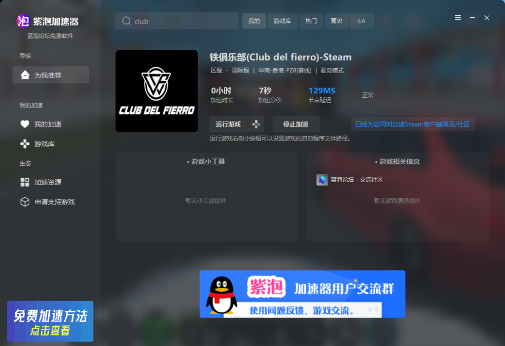 Steam新游戏铁俱乐部(Club del fierro)上市,紫泡加速器现已支持铁俱乐部(Club del fierro)游戏加速!